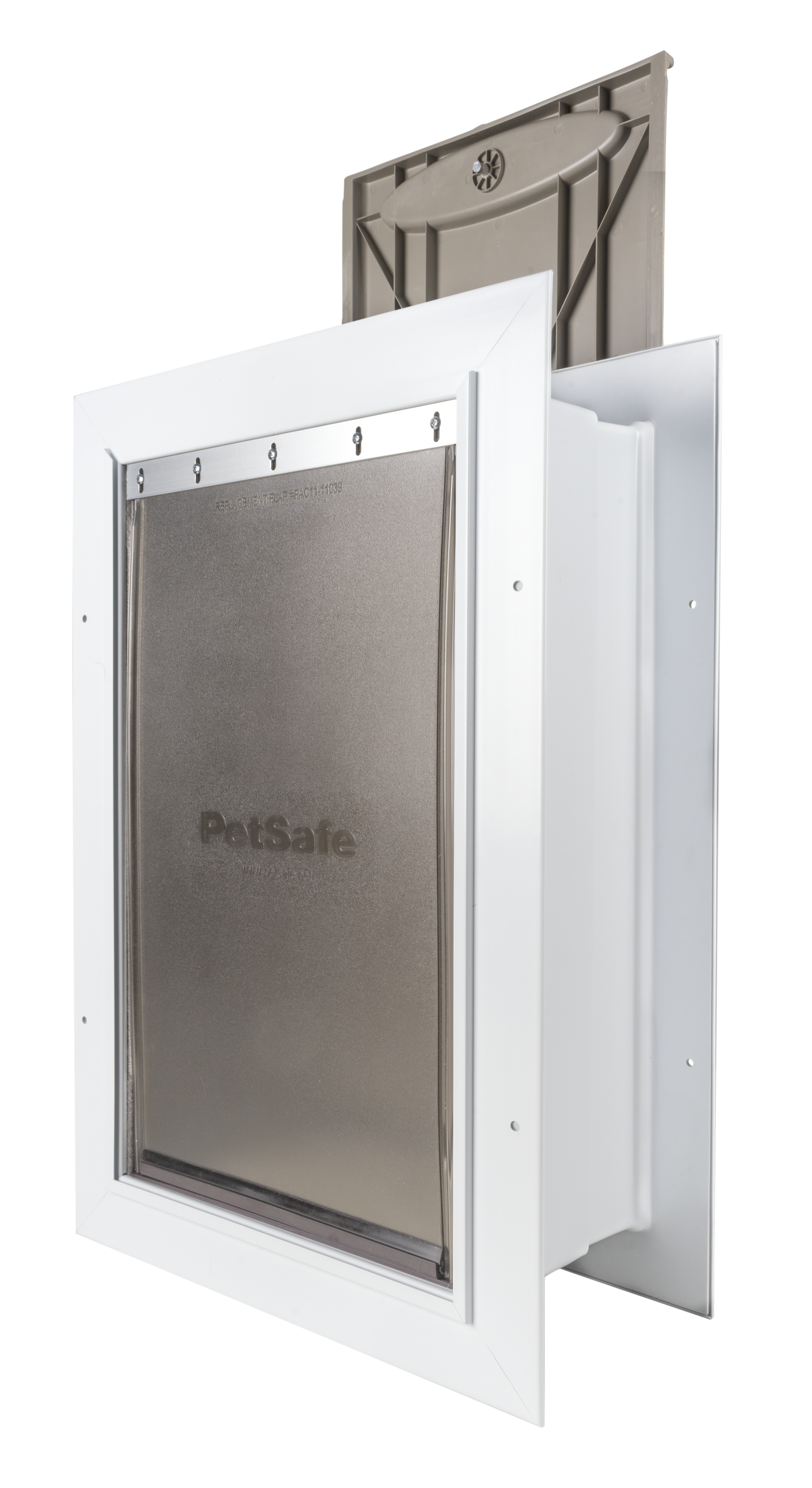 The Dual Flap design (one inside and one outside) makes for a well insulated barrier between the outdoors and your indoor room. This Dog Door can be used in a variety of wall materials including all types of siding, stucco, even brick. Installation requires only a few tools. The Wall Pet Door from PetSafe has a lifetime limited warranty.